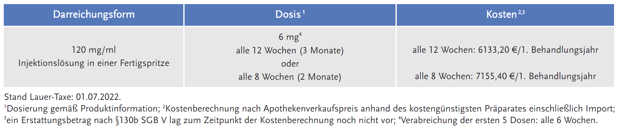 Dosierung und Kosten