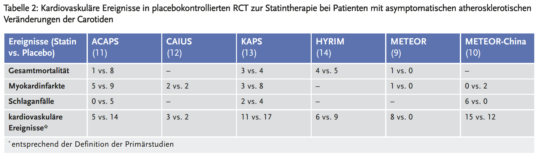 Placebokontrollierte RCT zu Statinen bei Carotisplaques: Ergebnisse zu kardiovaskulären Ereignissen
